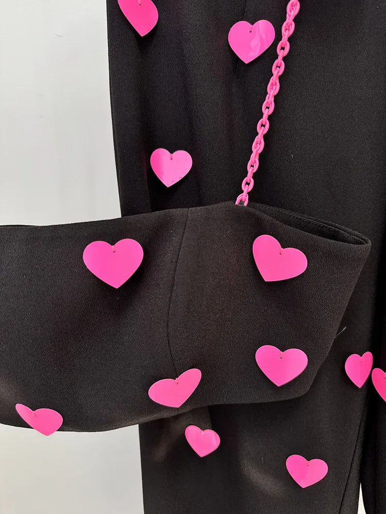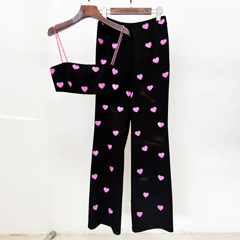 Heart Applique Chain Crop Top And High Waist Pants Set