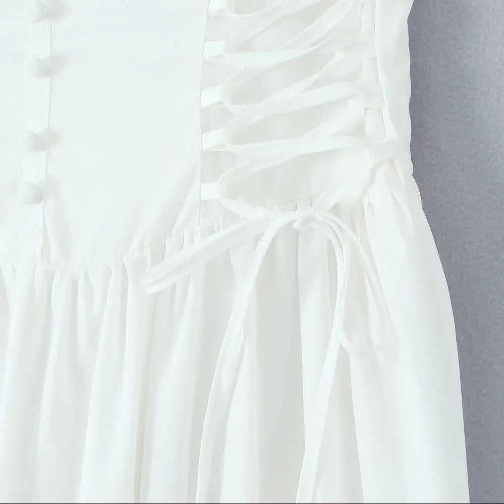 Step into effortless summer style with our White Front Buttons Tank Maxi Dress, a charming addition for any adult wardrobe. This elegant dress features a timeless O-neck neckline and a classic tank style, offering a comfortable and breezy feel. Decorative front buttons (implied by title, despite "Bow" decoration in specs) add a touch of charming detail, while the dress maintains a clean and versatile solid pattern.