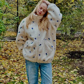 Printed Fuzzy Wool Fleece Zipper Jacket