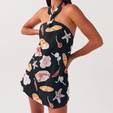Print Metal Rings Halter Cross Tassel Mini Dress