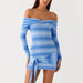 Blue Gradient Off-Shoulder Knit Drape Mini Dress