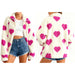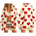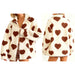 Heart Print Fuzzy Fleece Zip Up Jacket