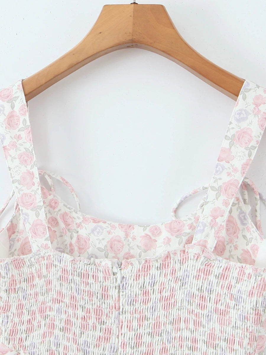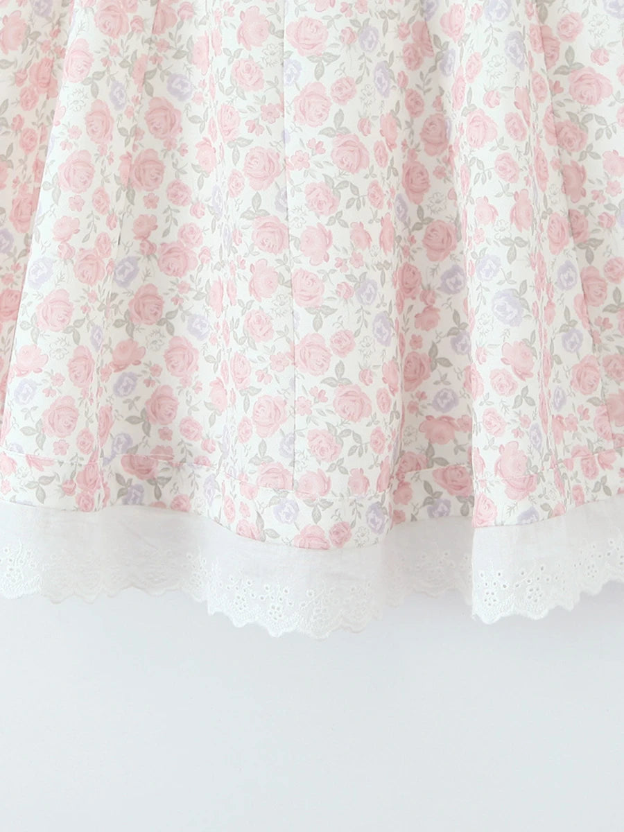 Pink Floral Tie Up Eyelet Trim Mini Dress