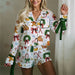 Satin Christmas Long Sleeve Cartoon Print Shirt And Shorts Pajamas Set