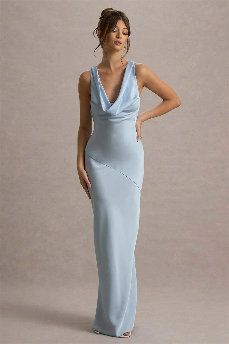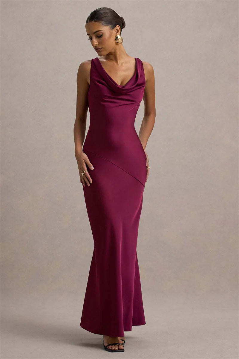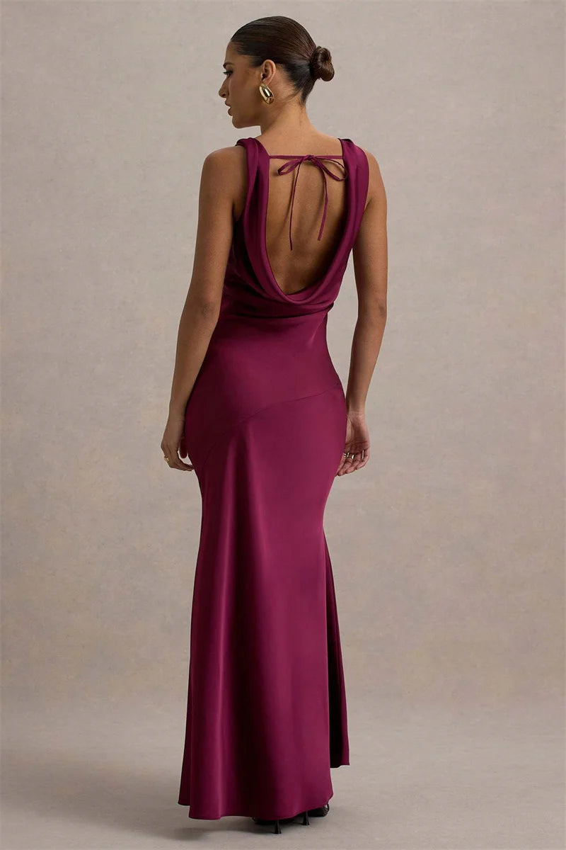Satin Cowl Neck Backless Maxi Dress