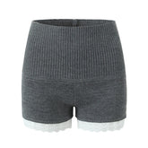 Grey Lace Trim Knit Cardigan And Shorts Set
