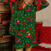 Christmas Print Button Up Long Sleeve Top and Shorts Pajamas Sets