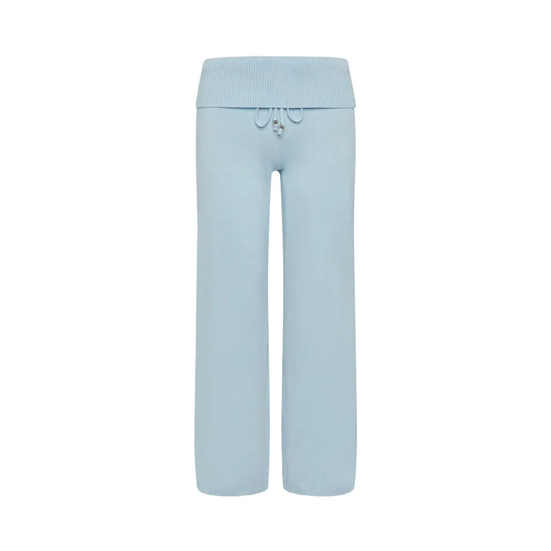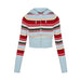Striped Rainbow Knitted Cropped Cardigan And Blue Knit Pants Set