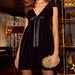 Velvet Bow Sleeveless V Neck Babydoll Mini Dress