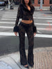 Black Lace Sheer Furry Patchwork Jacket And Pants Set