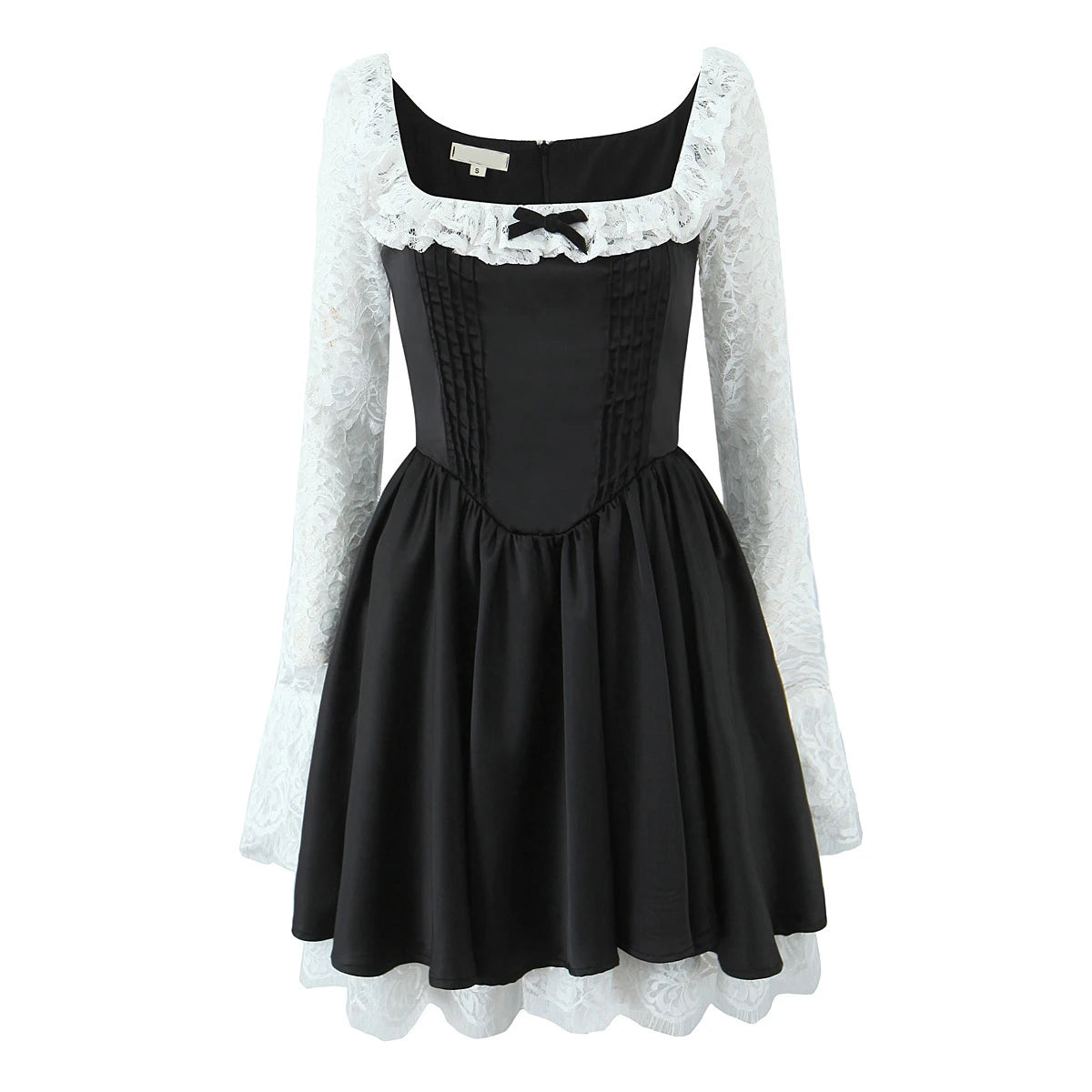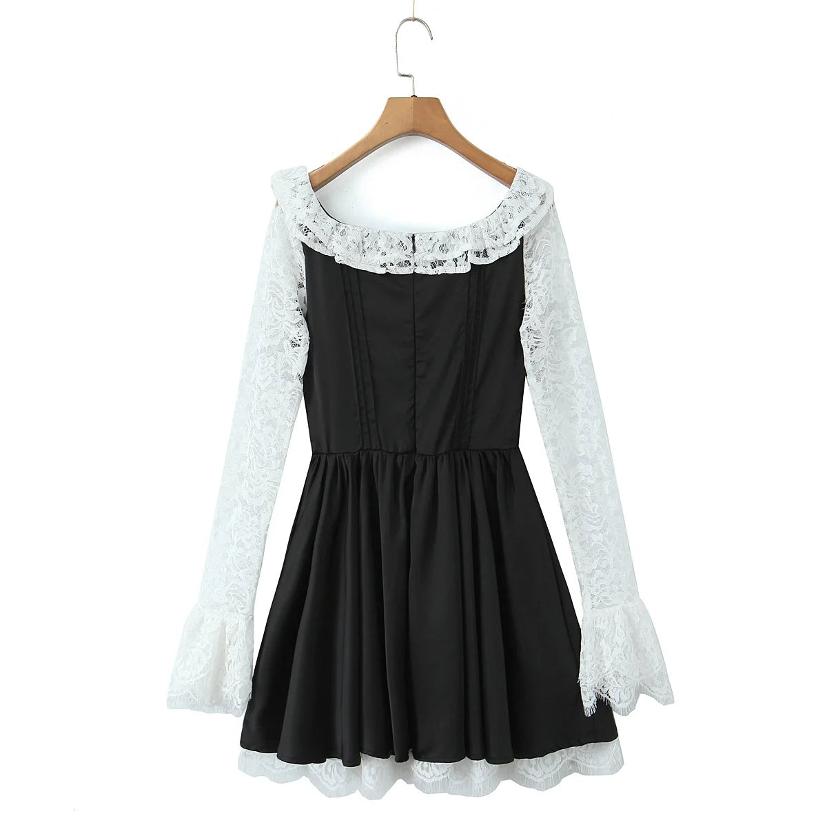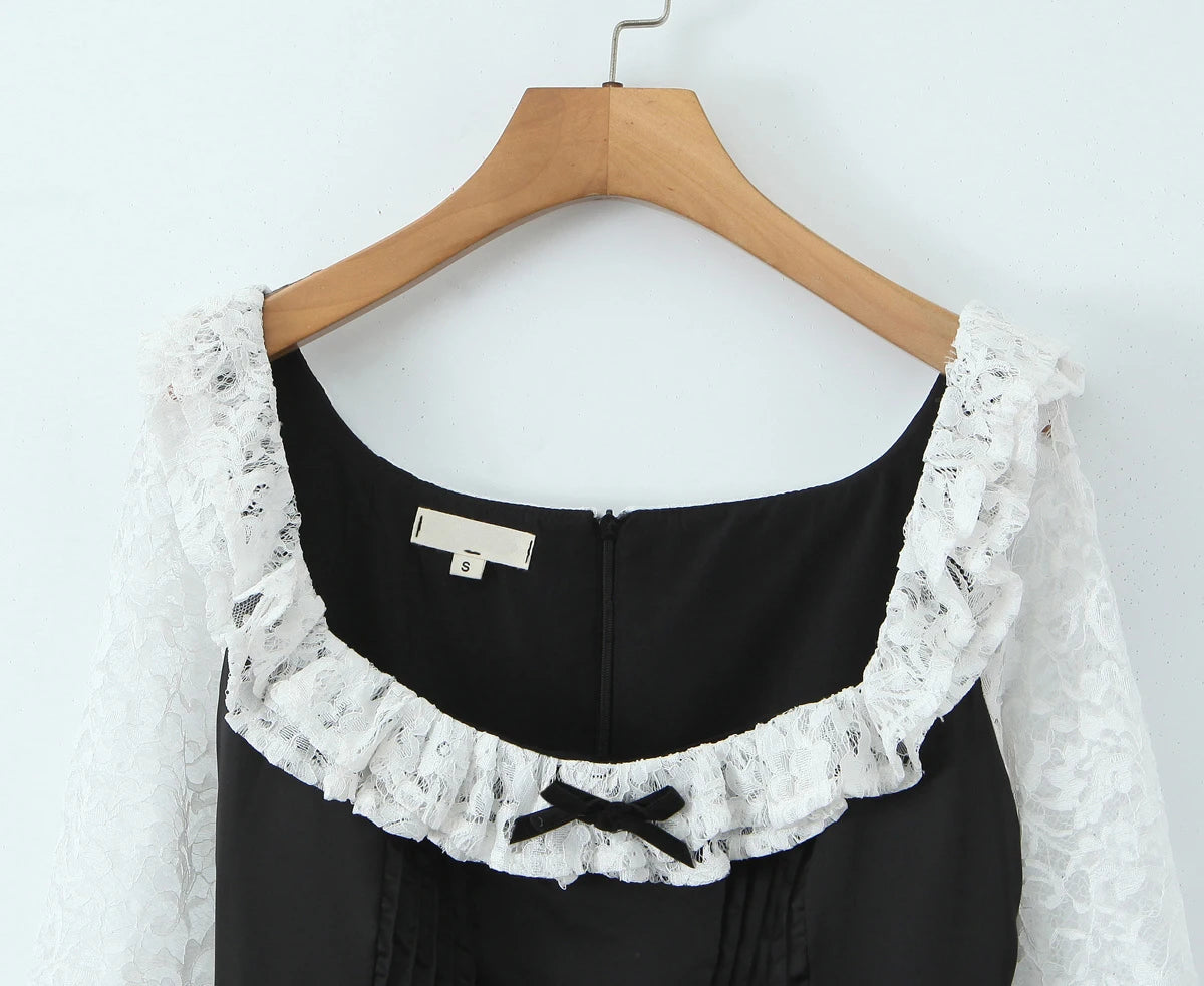 Black Long Sleeve Lace Hem Mini Dress