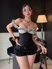 Black Slash Neck Folds Polka Dot Print Top