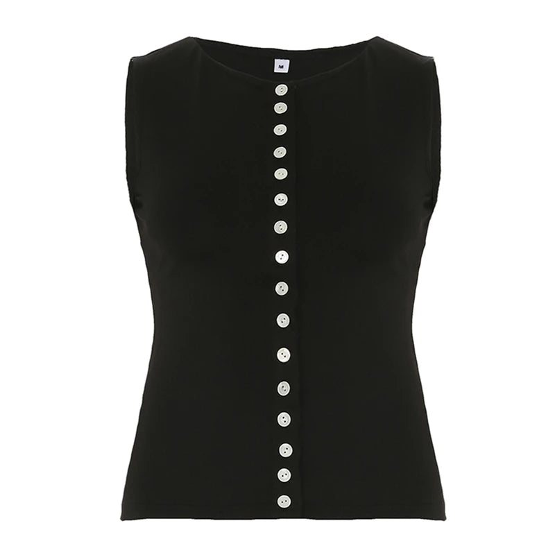 Product Description: Elevate your casual style with our Button-Up Tank Top, a trendy addition for any adult wardrobe. This eye-catching tank features a classic button-up front that adds a touch of vintage charm, while its daring backless design makes a confident statement. With a short length (4-16 inches), this crop top is perfect for pairing with high-waisted jeans, skirts, or shorts.