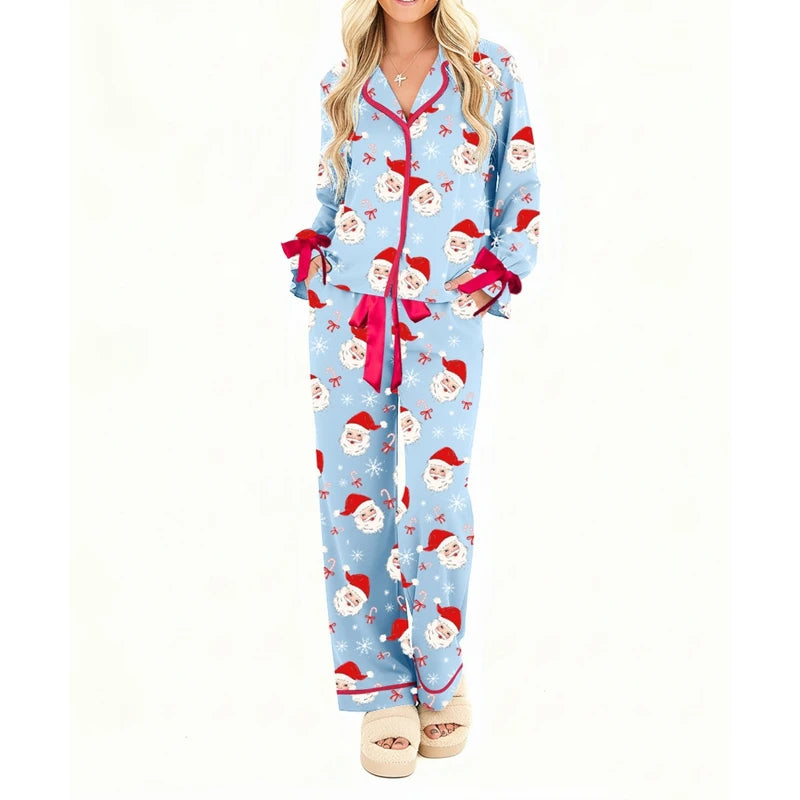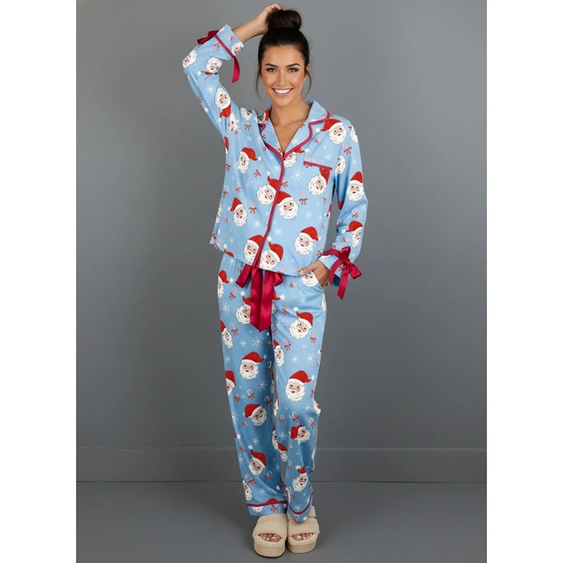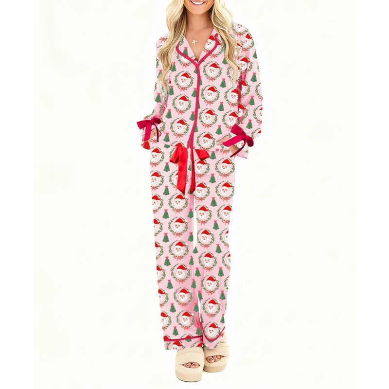 Christmas Bow Tie Ruffle Long Sleeve Shirt with Pants Pj Set