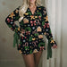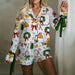 Christmas Long Sleeve Cartoon Print Shirt And Shorts Set