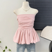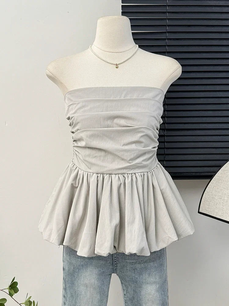 Women's elastic pleated puff strapless top.