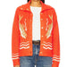 Orange sweater with fish pattern worn by a person