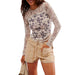 Floral Print Sheer Long Sleeve Top