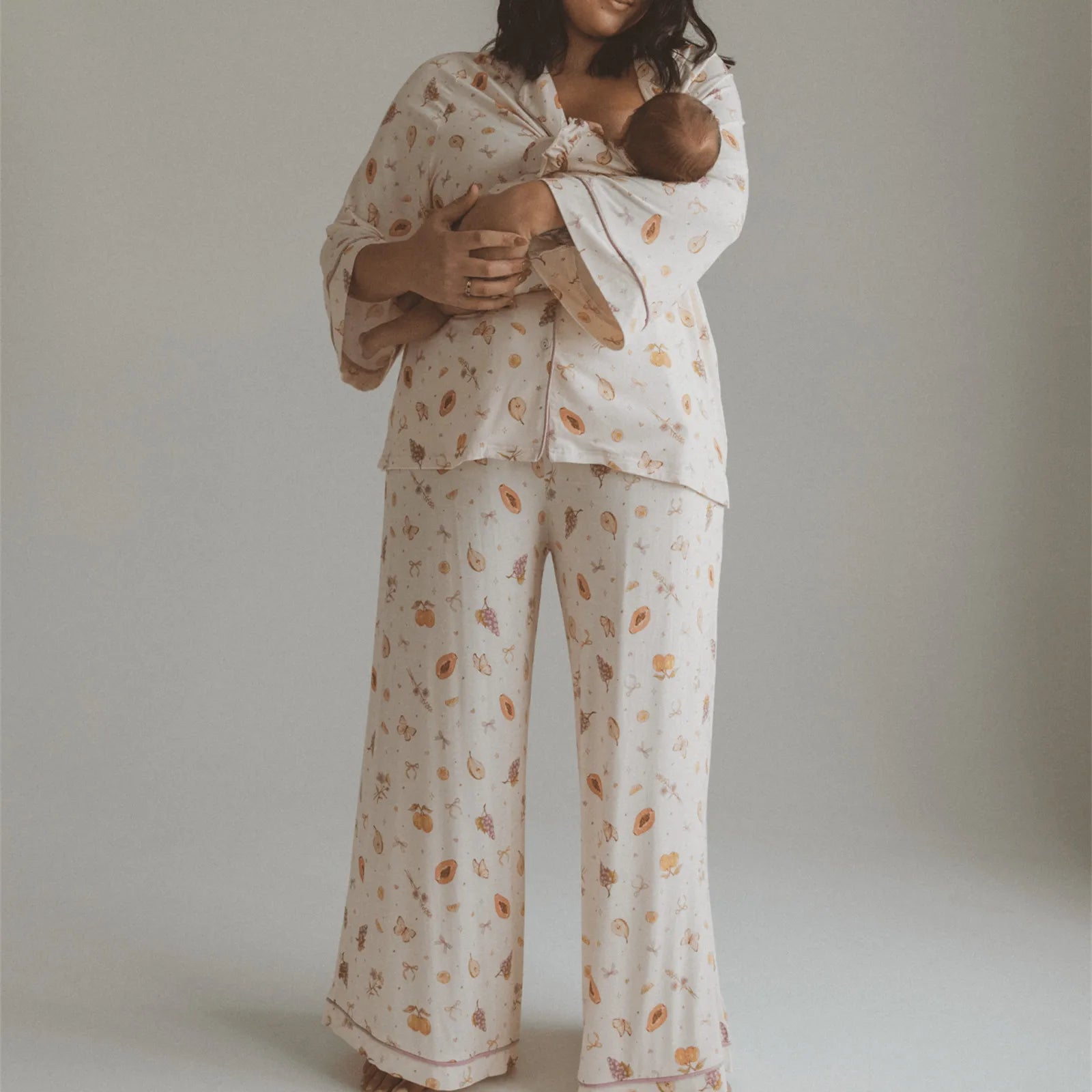 Fruit Print Long Sleeve Shirt with Long Pants Loungewear Set