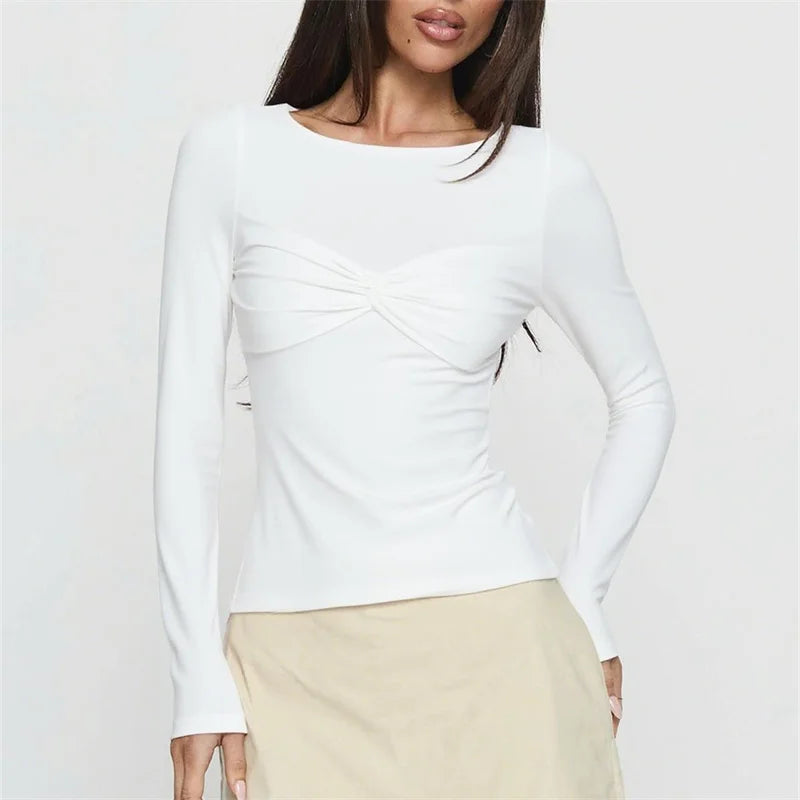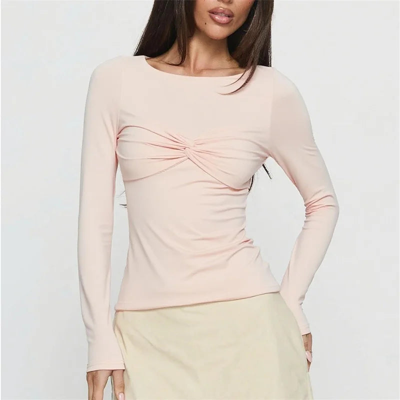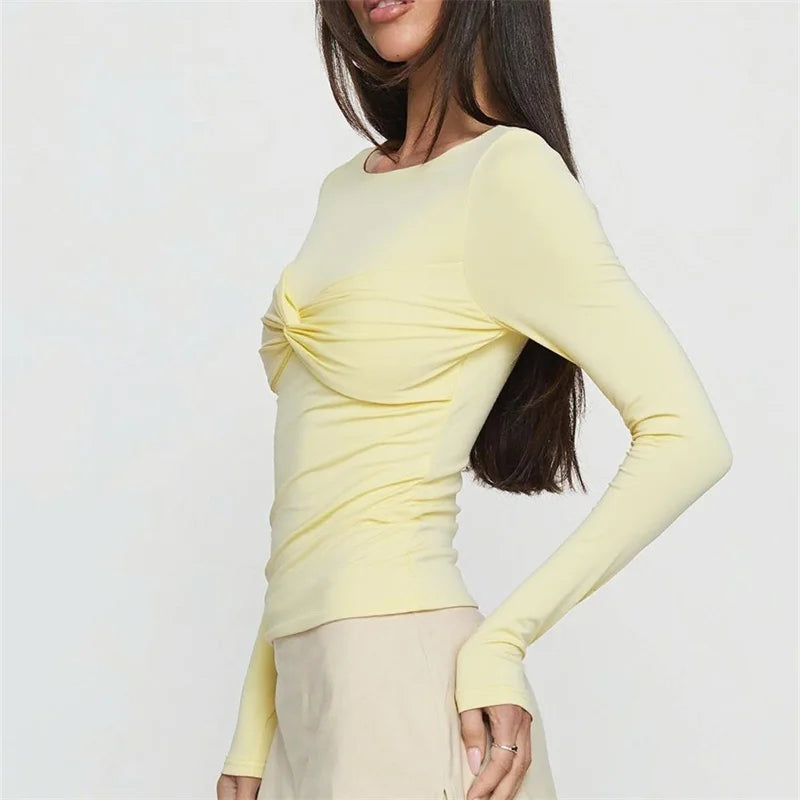 Long Sleeve Twist Knot Front Blouse