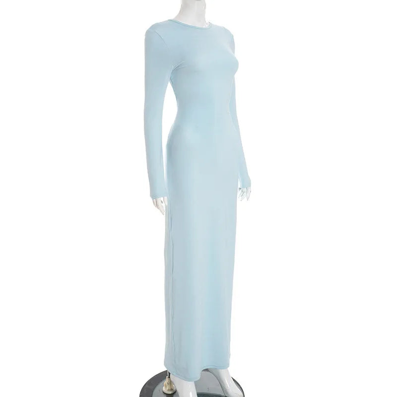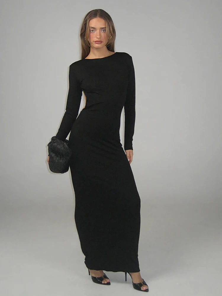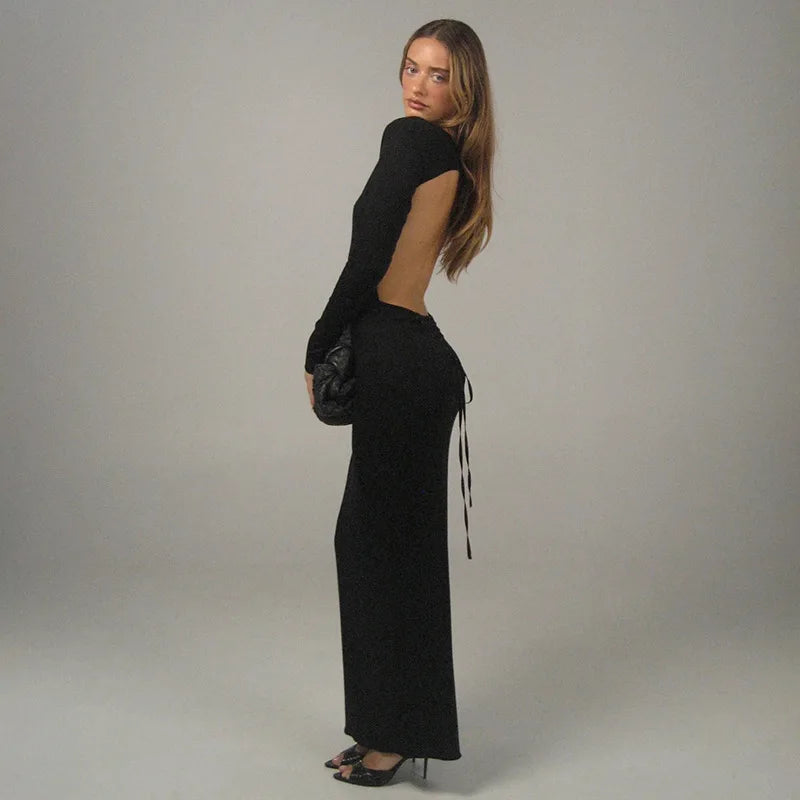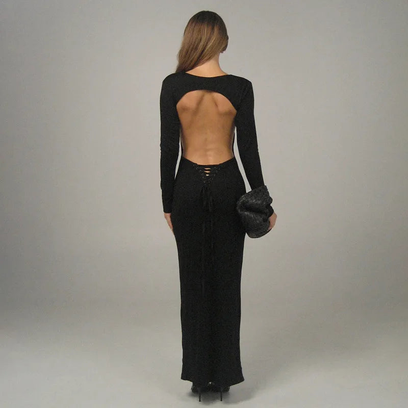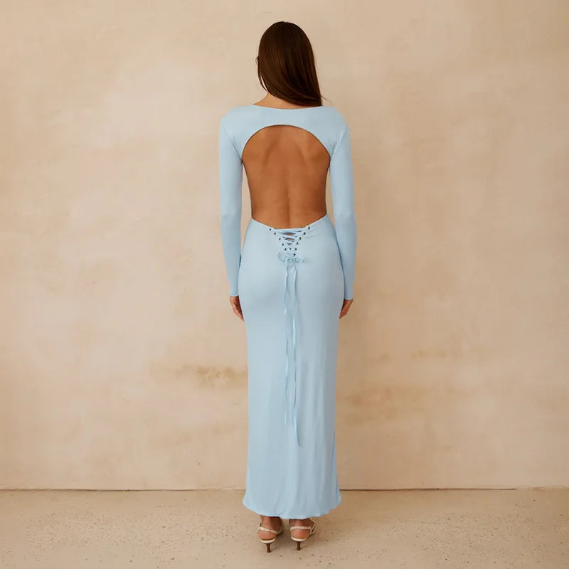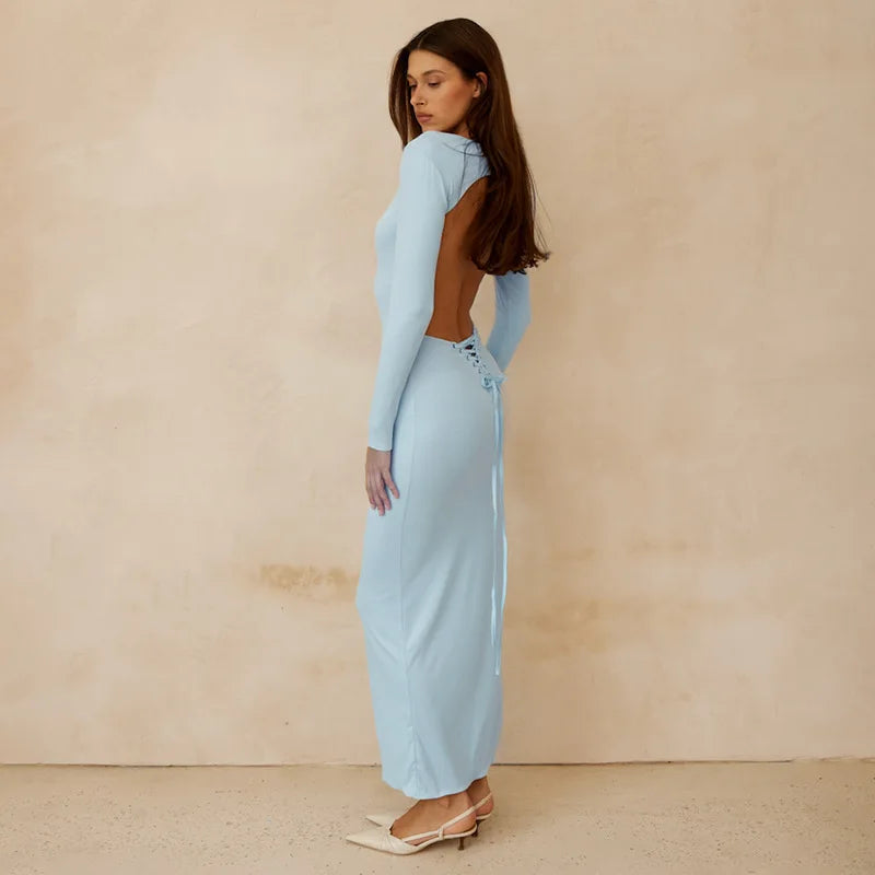 Open Back Long Sleeve Lace Up Maxi Dress