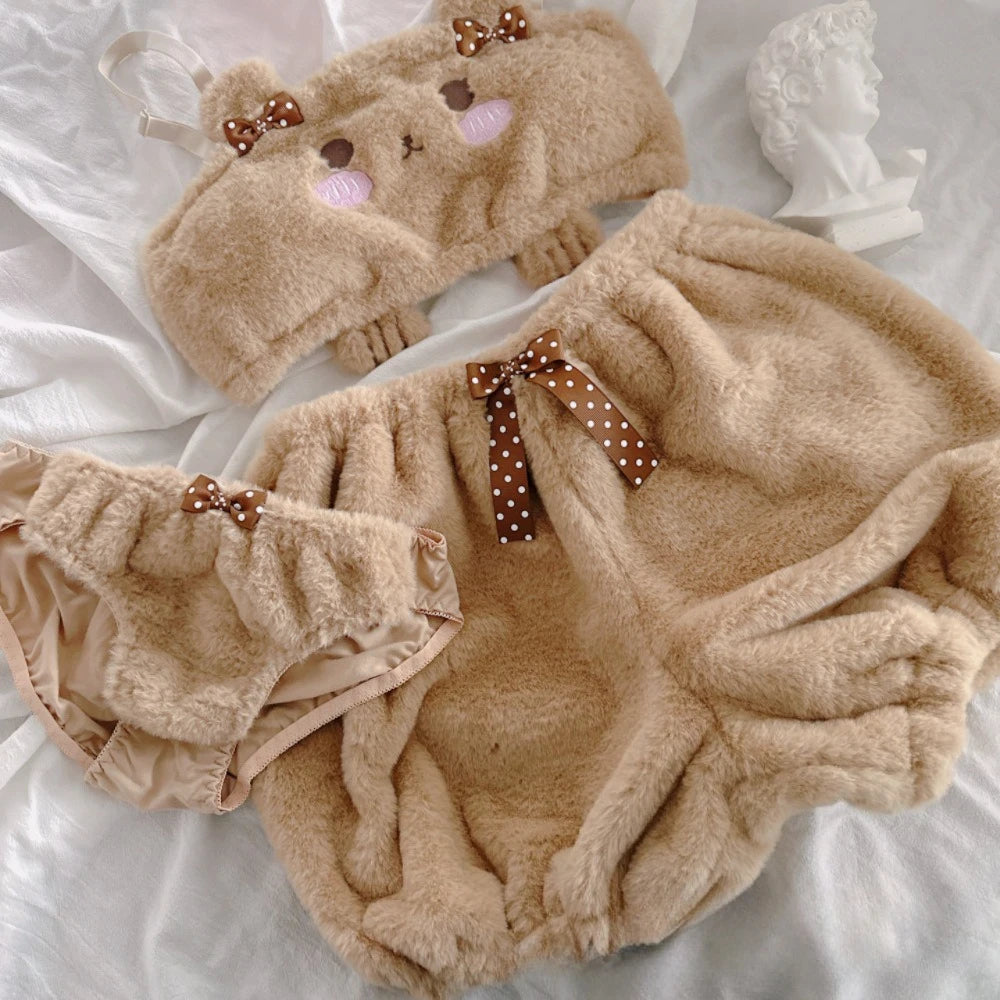 Plush Bear Bralette And Shorts Pj Set