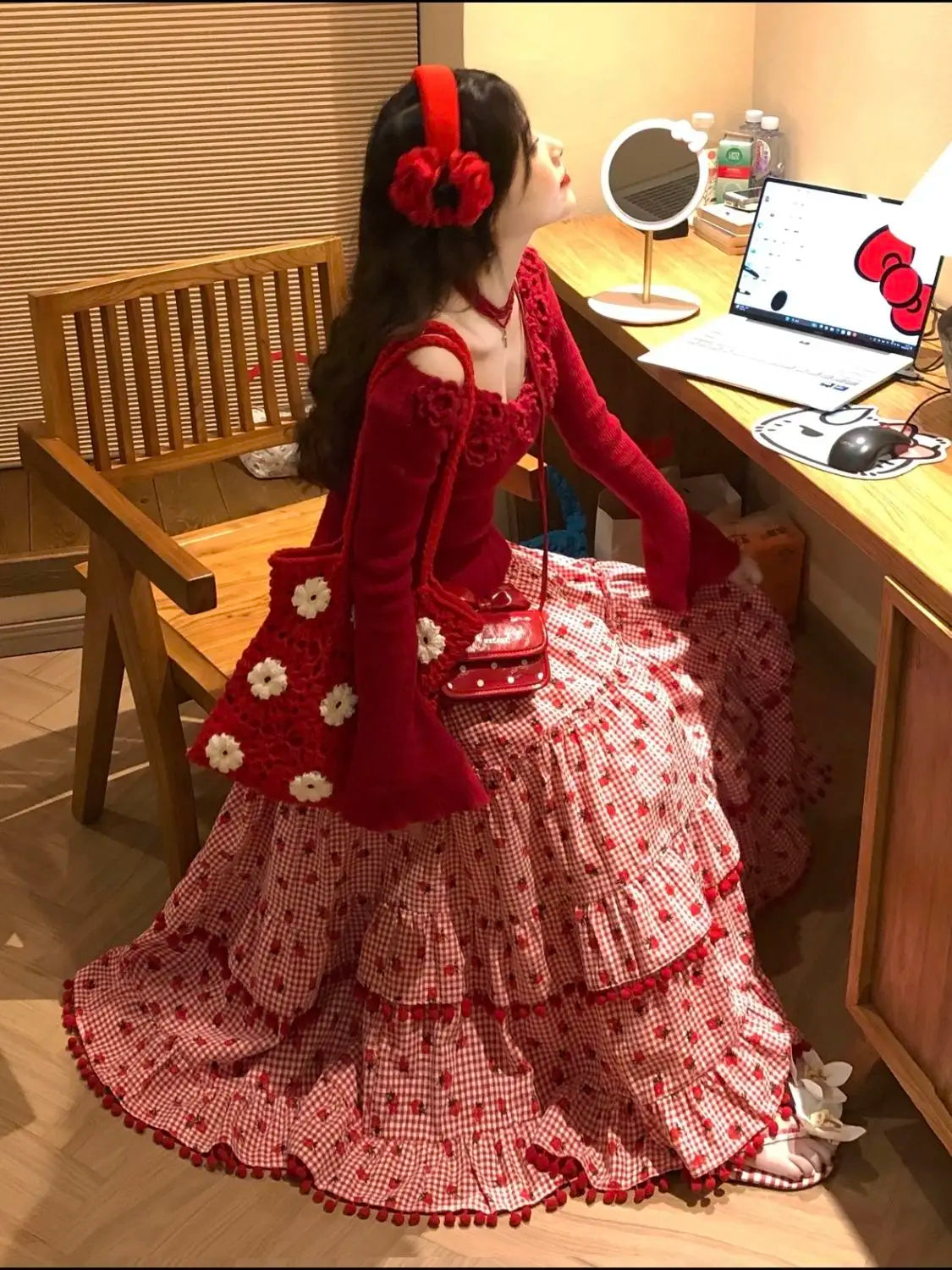 Add a playful and charming touch to your wardrobe with our Red Strawberry Print Tassel Long Skirt. This delightful adult-focused skirt features a vibrant red color adorned with a whimsical strawberry print, perfect for a sweet and fresh look. The tiered decoration (referred to as "Tierred" in specs) adds beautiful volume and movement, creating a graceful silhouette.
