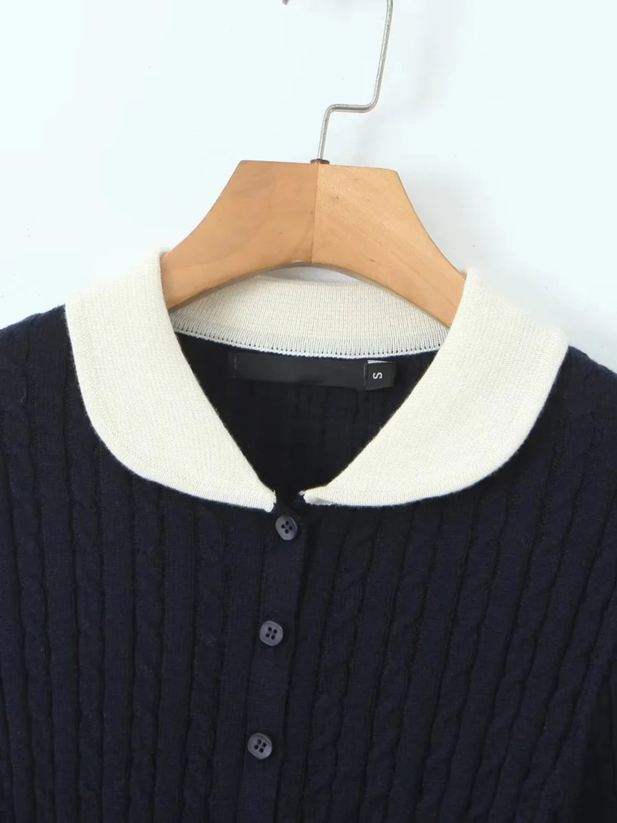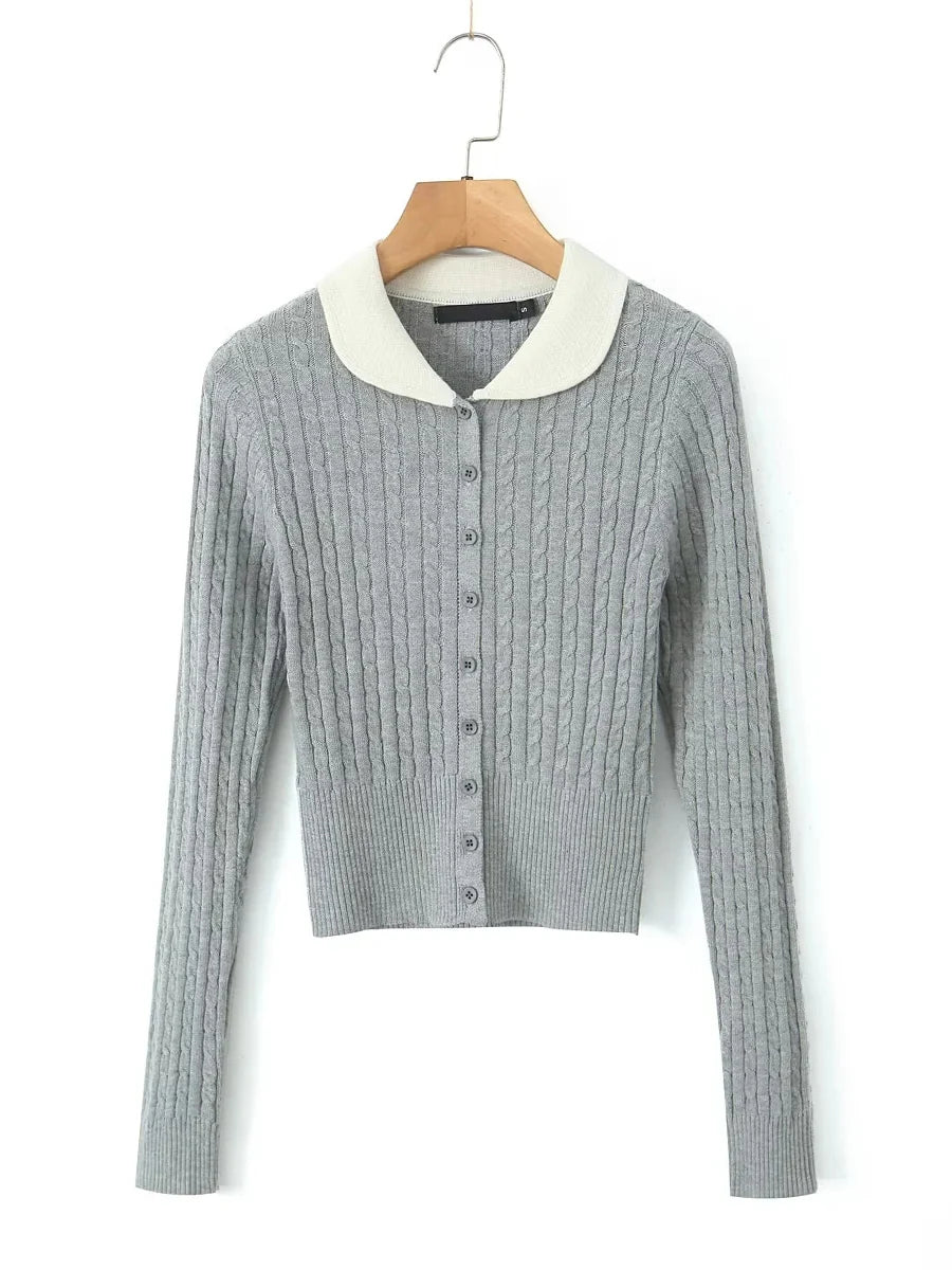 Ribbed Long Sleeve Peter-pan Collar Top