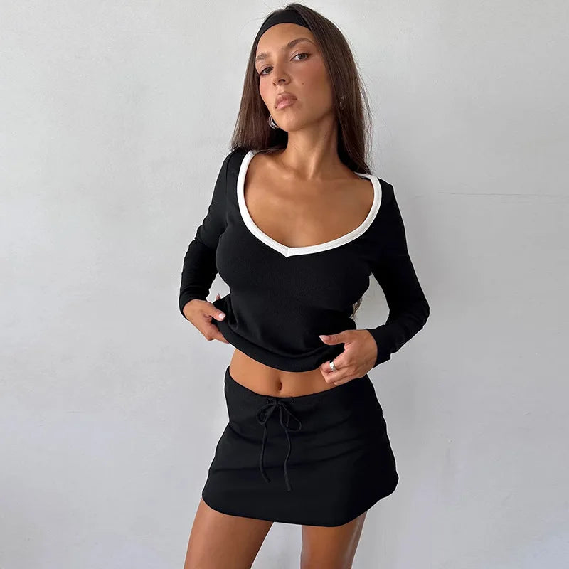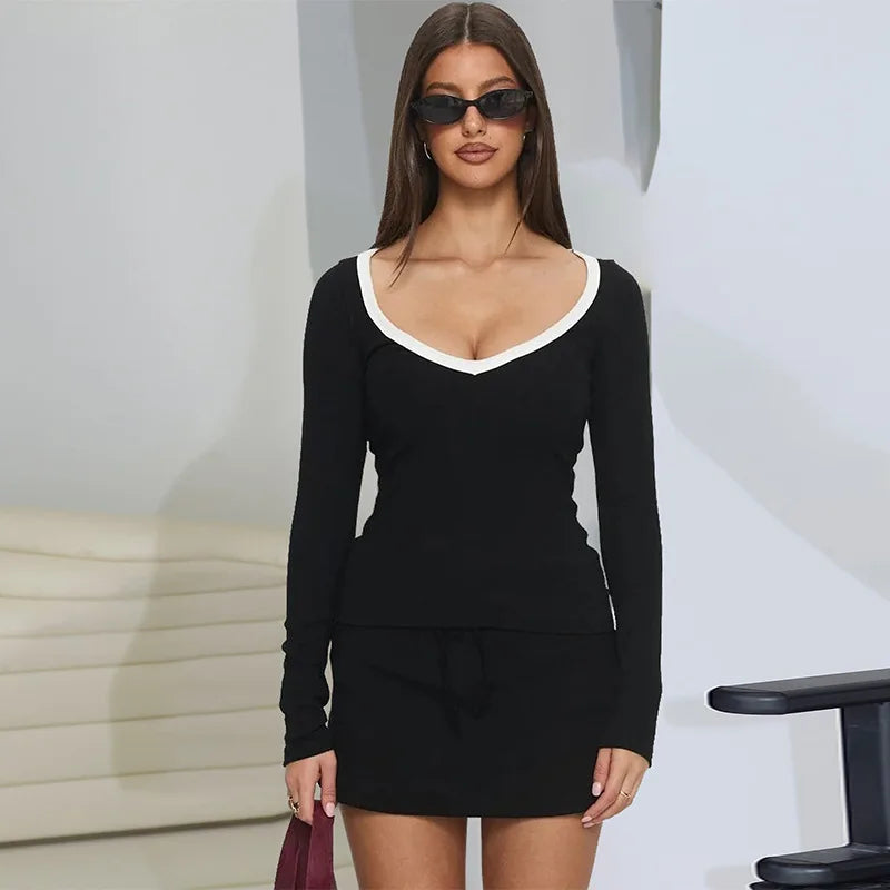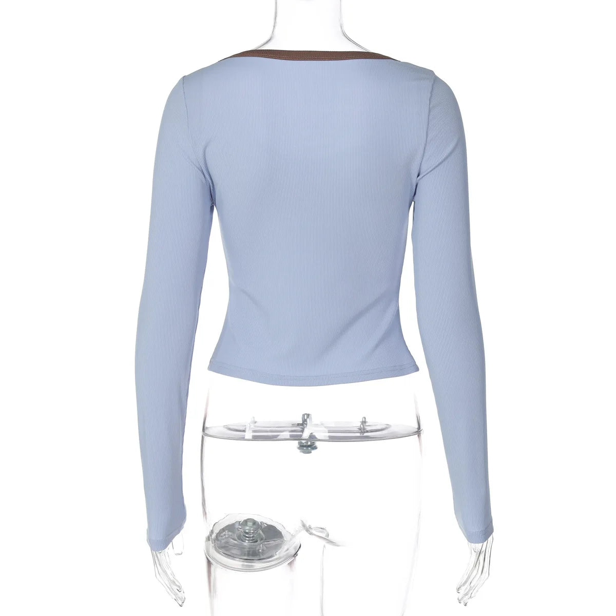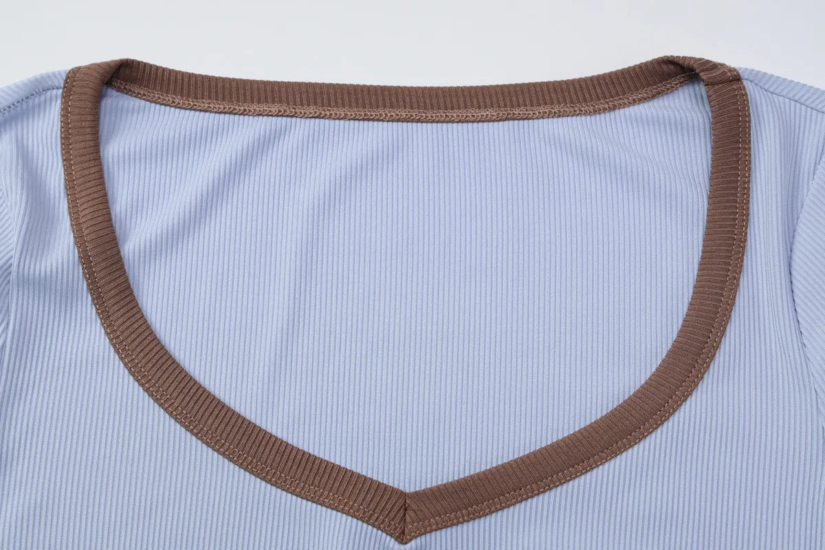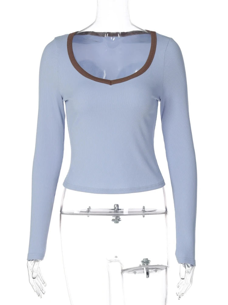 Ribbed Trim Long SLeeve Top