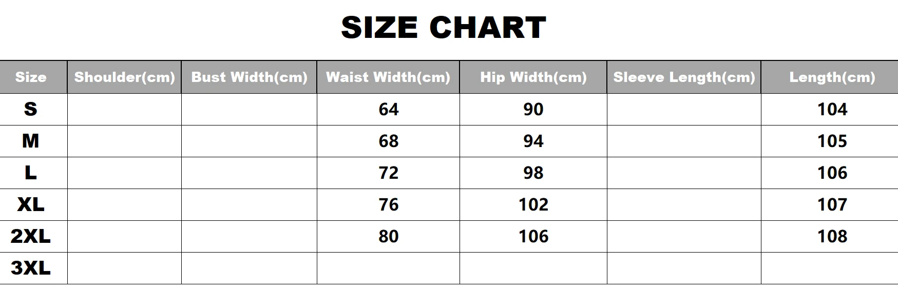 | XL | 16–18 | 20–22 | 48–50 | 20–22 | 41–43 | 104–109 | 34–36 | 86–91 | 43–45 | 109–114 |