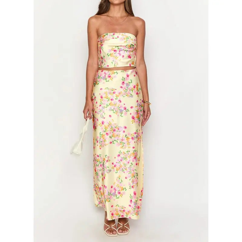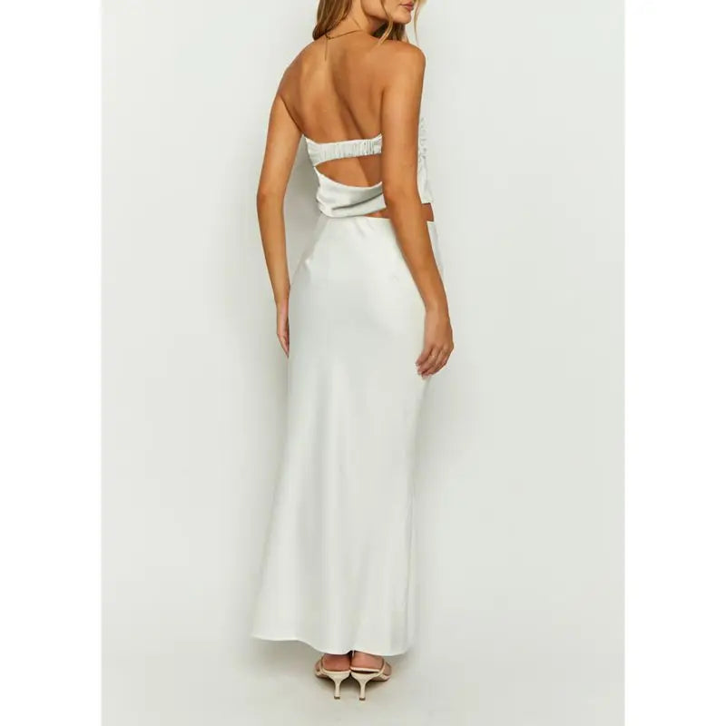 Satin Crop Tube Top And Long Skirt Set