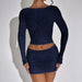 Sequin Solid Long Sleeve Top And Mini Skirt Set