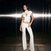 Short Sleeves Hollow Out Zipper Tops And Wide Leg Pants Set