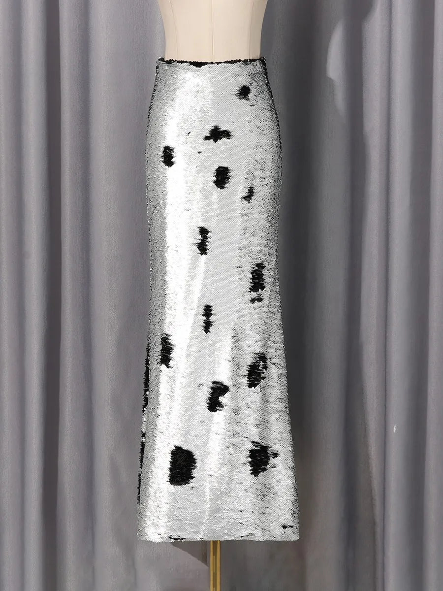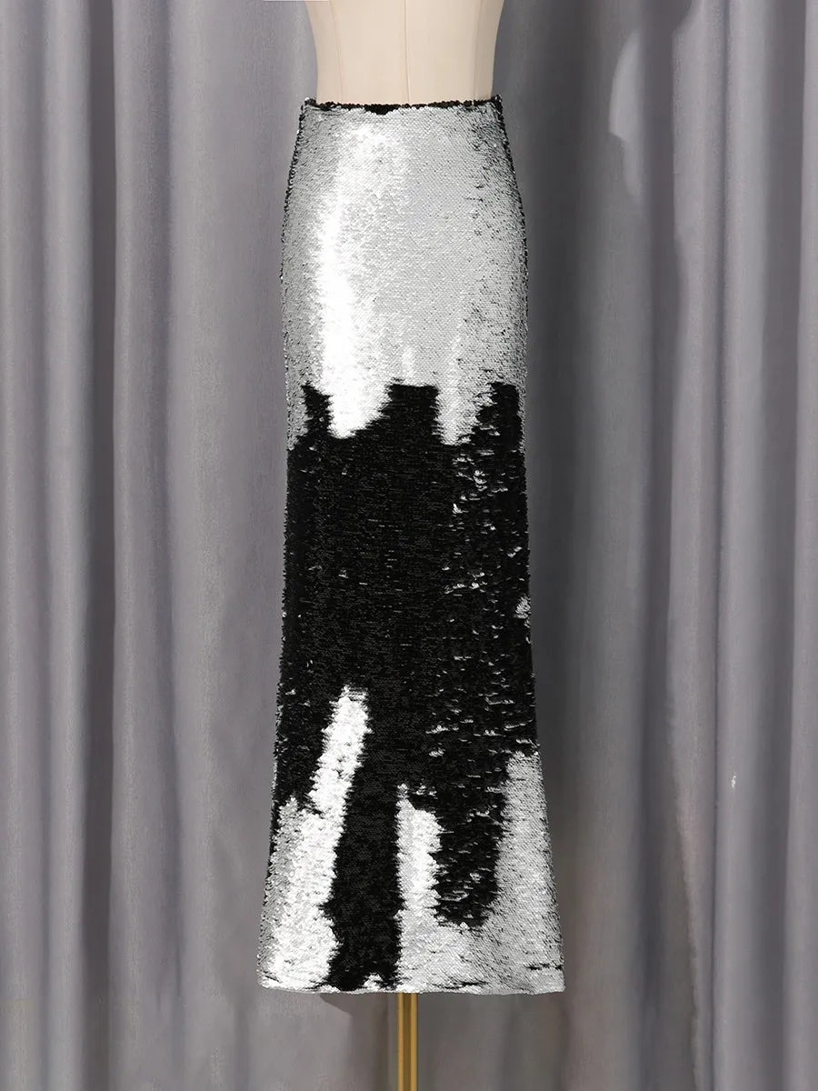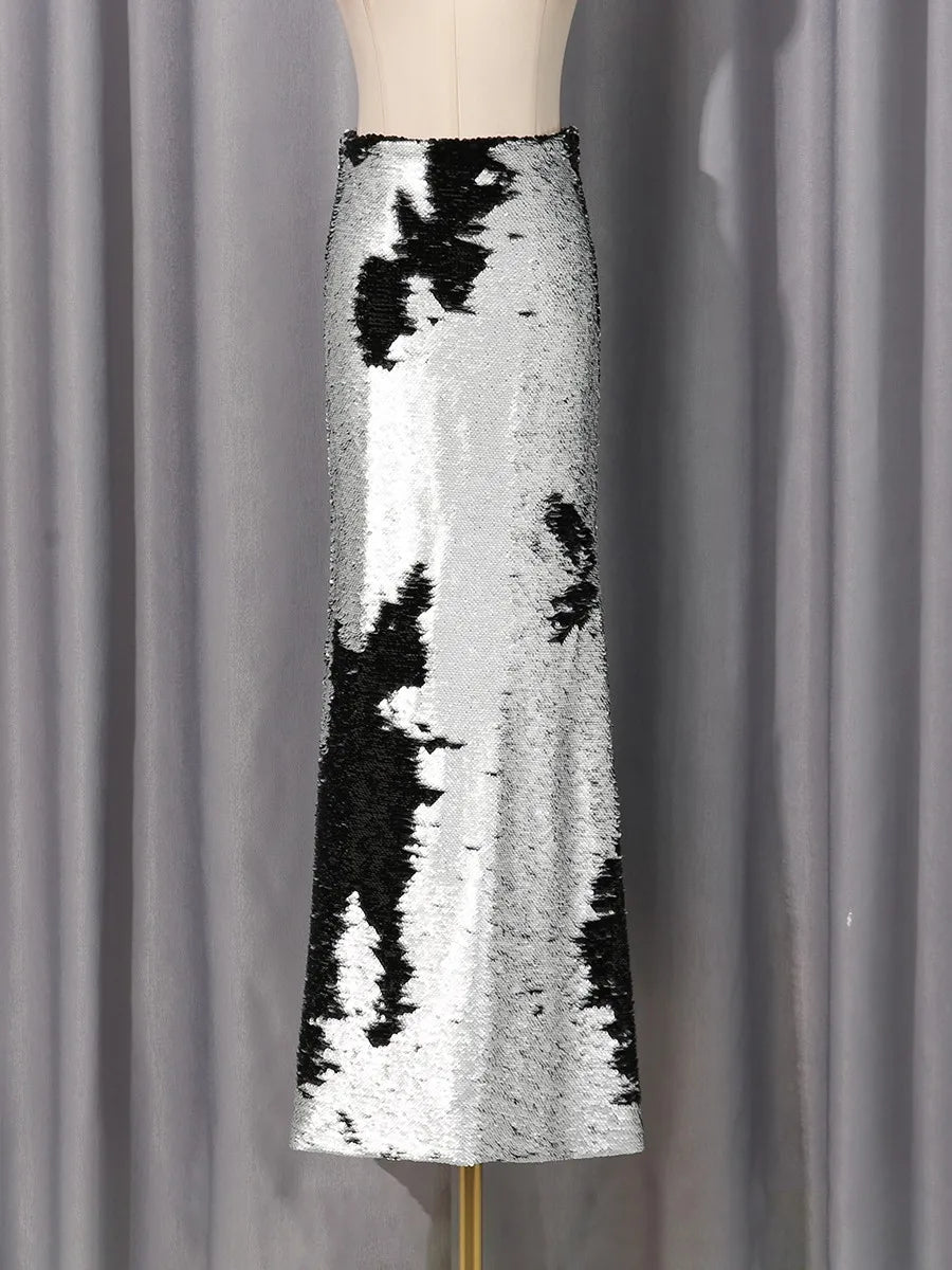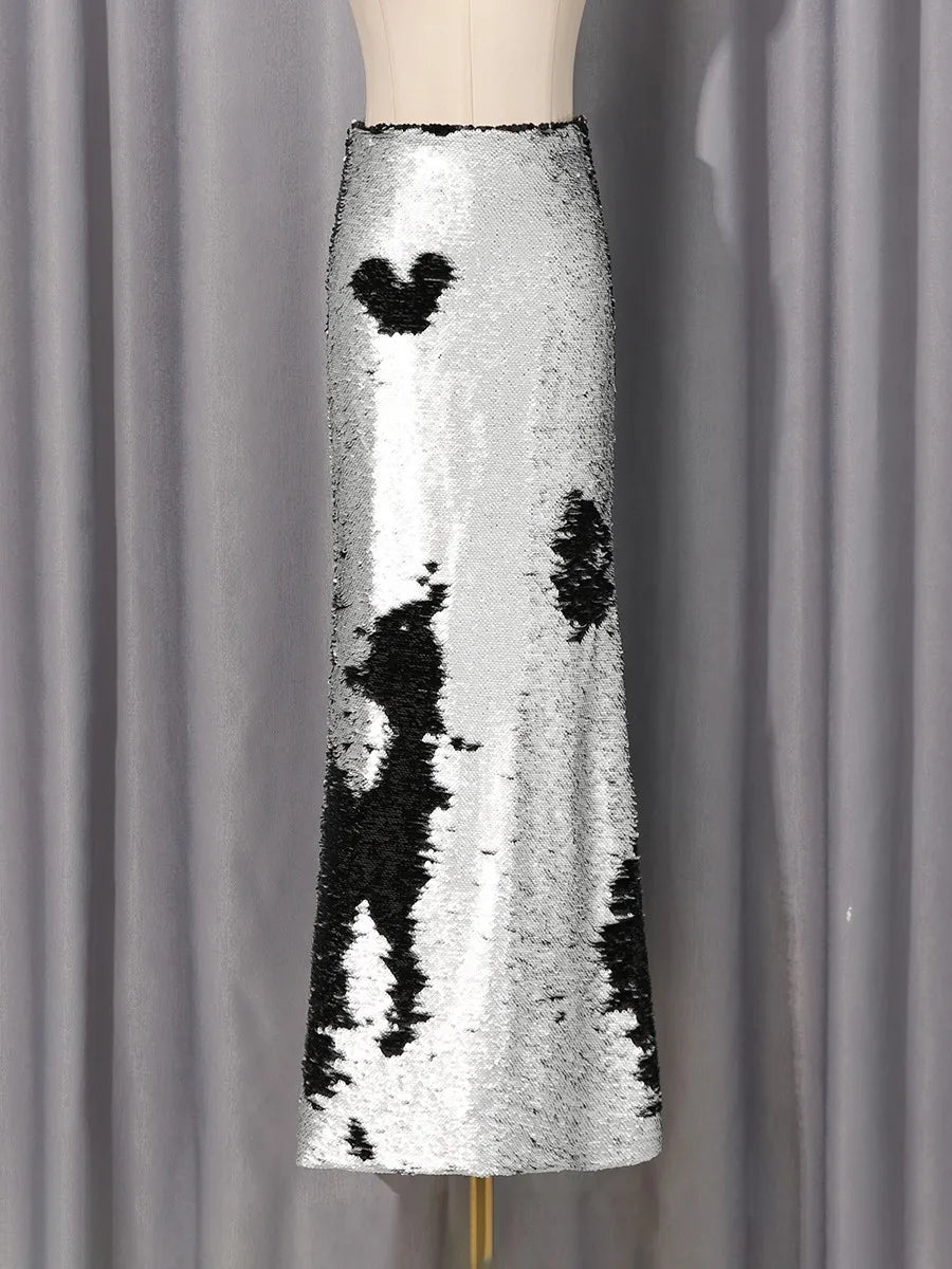 Silver And Black Sequin Long Skirt