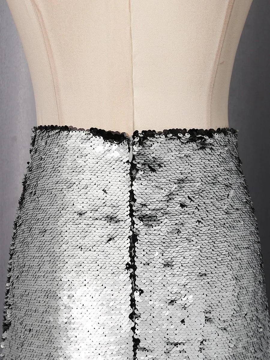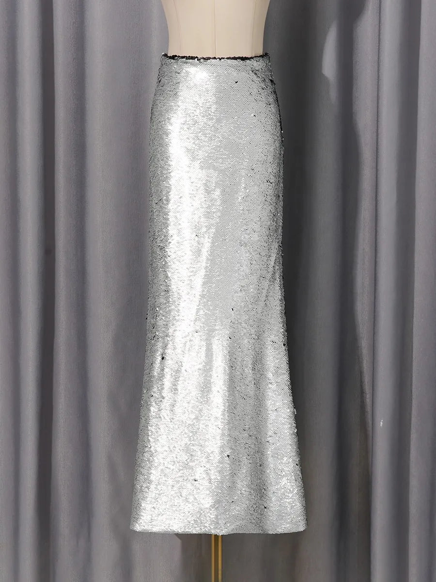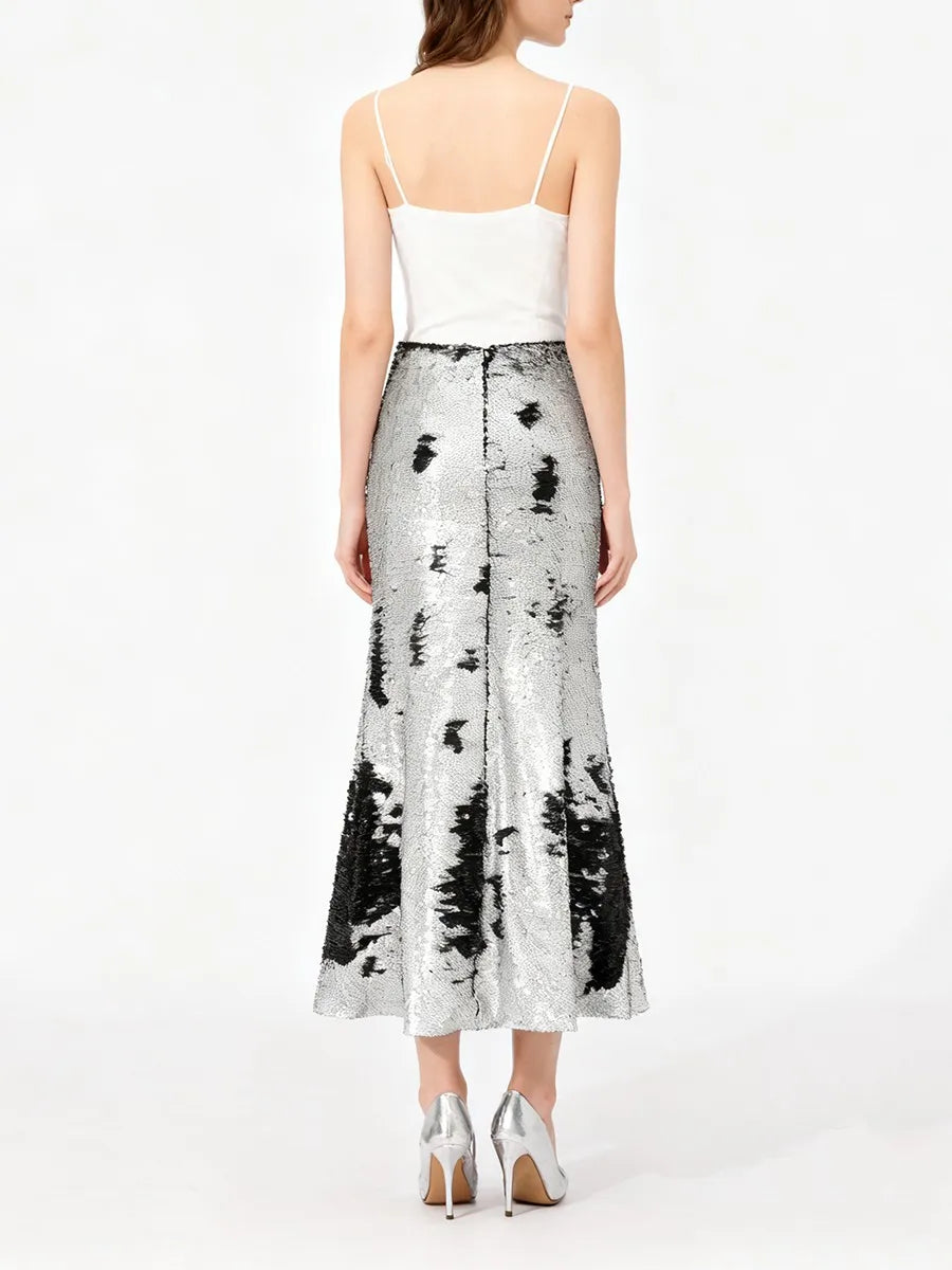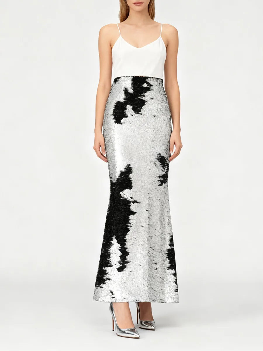Silver And Black Sequin Long Skirt