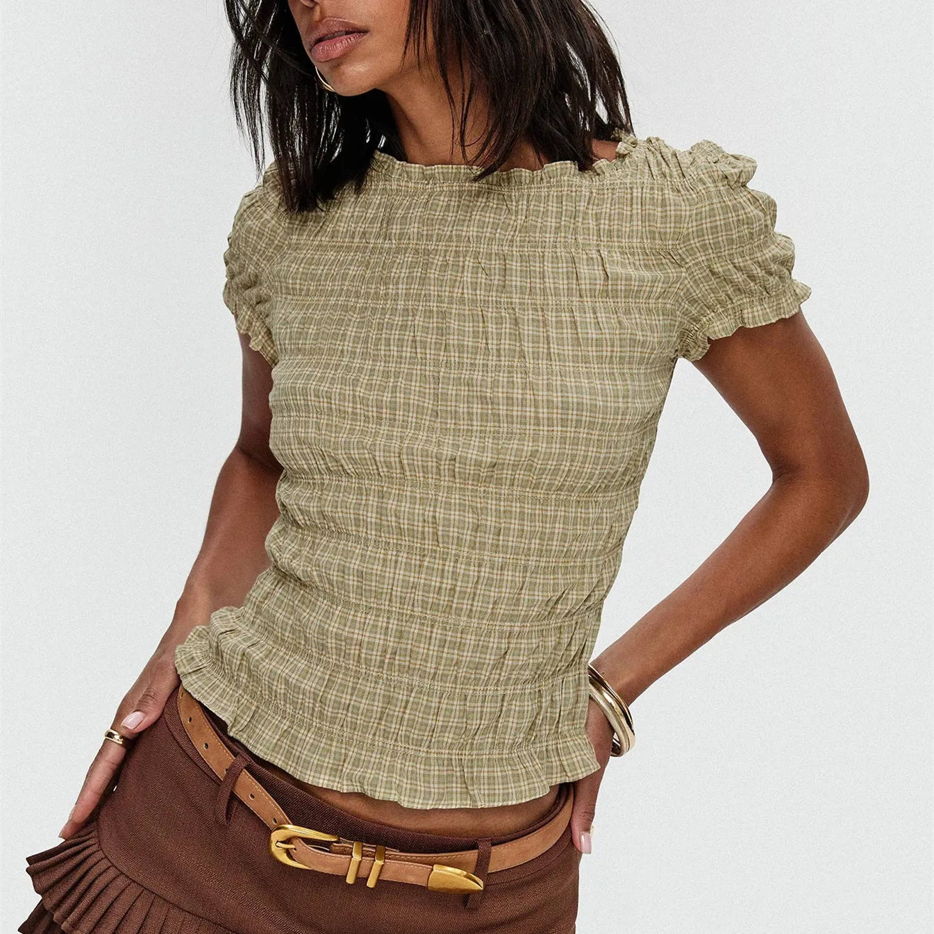 Smocked Short Sleeve Top - V-Neck Casual Tee