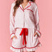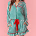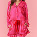 Stripe Solid Trim Long Sleeve Button Down Shirt And Ruffle Shorts Sleepwear Set
