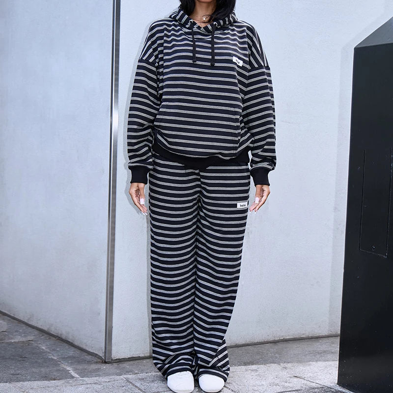 Striped Long Sleeve Hoodie Sweatshirt and Joggers Pants Tracksuit Set