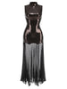 Turtleneck Sequins Patchwork Mesh Long Dress