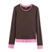 Two Tone Patchwork Round Neck Long Sleeve Top
