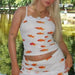White Cami Goldfish Top And Printed Midi Skirt Set