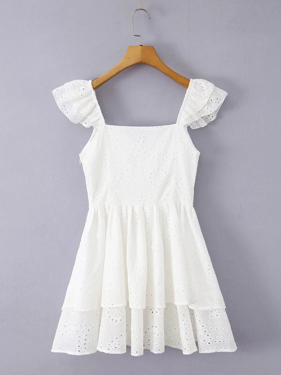 White Ruffles Cake Mini Dress