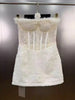 White Sequin Strapless Feather Lace Mini Dress