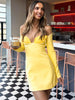 Yellow V Neck Off-shoulder Long Sleeve Mini Dress